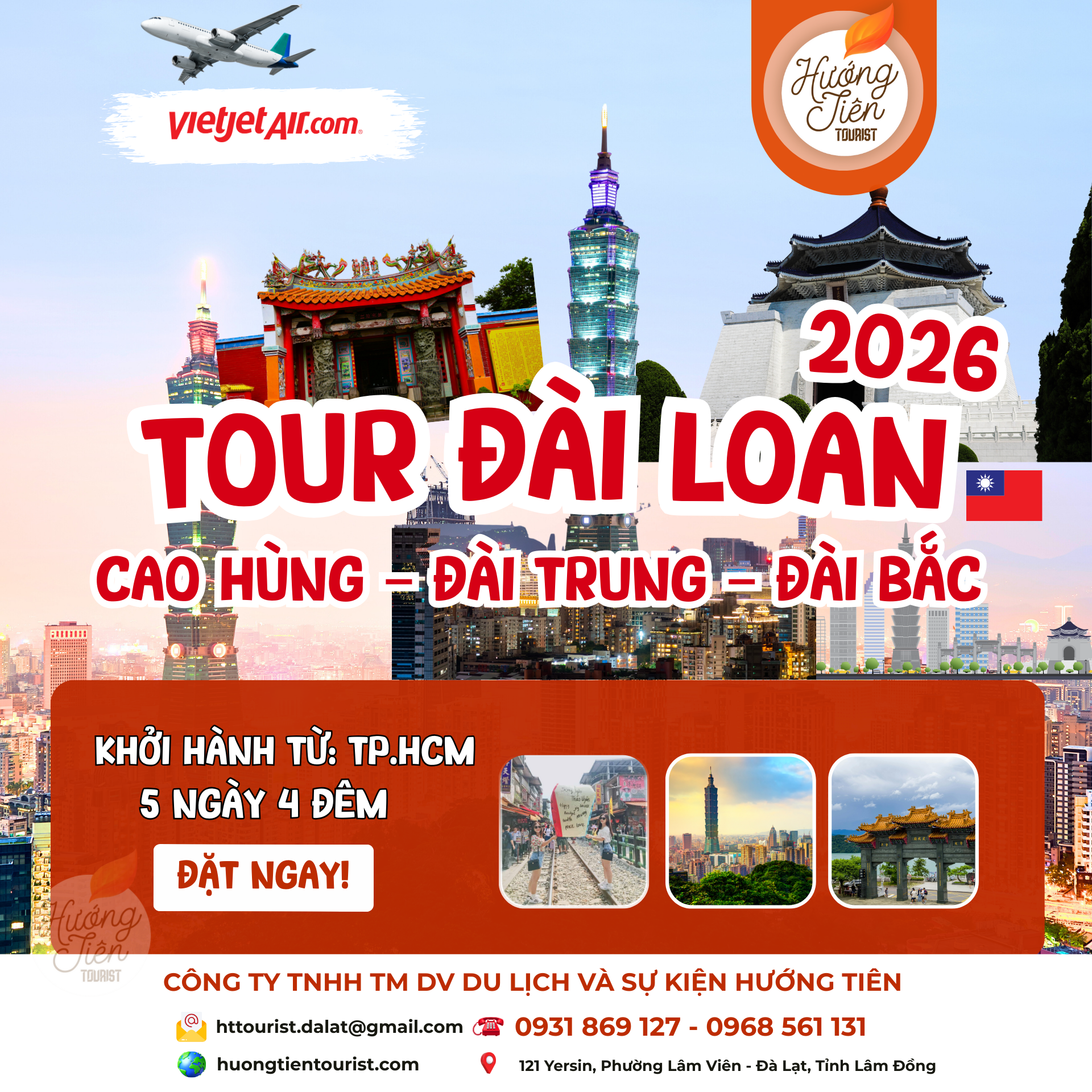 Bạn đang tìm kiếm tour Đài Loan 5 ngày 4 đêm khởi hành từ TP.HCM, khám phá “đảo ngọc châu Á” với hành trình tour Đài Loan Cao Hùng – Đài Trung – Đài Bắc đúng mùa đẹp nhất 2026? Hướng Tiên Tourist tự hào mang đến chương trình du lịch Đài Loan 2026 bay thẳng Vietjet Air, kết hợp quà tặng hấp dẫn như buffet lẩu, trà sữa truyền thống, đèn thiên đăng và trải nghiệm DIY bánh dứa. Với visa Quan Hồng dễ đậu, đây là cơ hội vàng để bạn khám phá văn hóa, ẩm thực và cảnh quan huyền ảo của Đài Loan mà không lo chi phí cao!