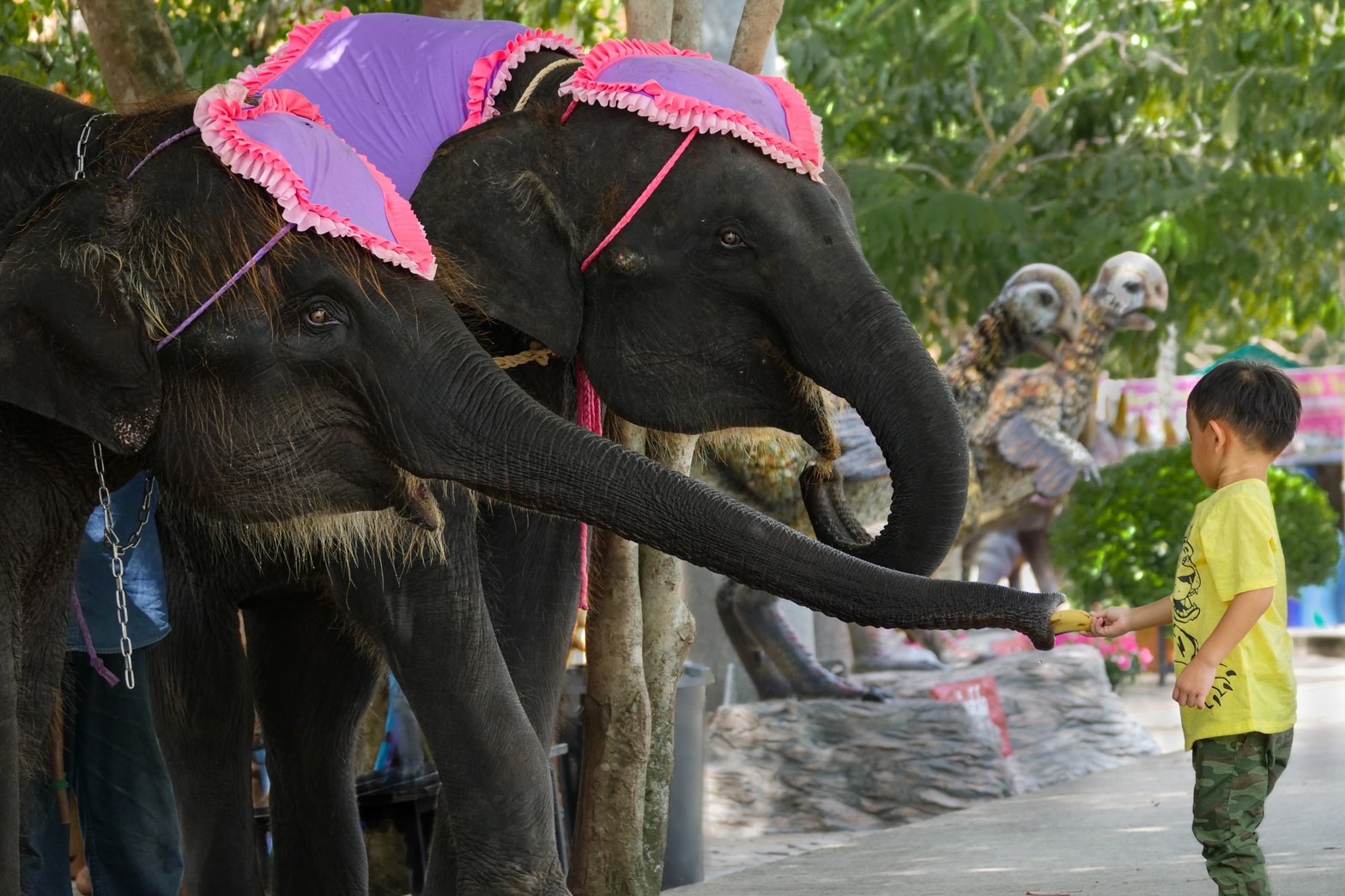 - Vườn lan Nongnooch quý khách chụp hình với những chú voi dễ thương, công viên khủng long